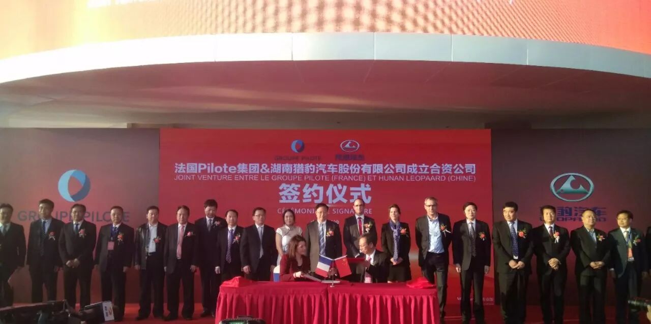 2017年11月2日,由法國(guó)Pilote集團(tuán)和湖南獵豹汽車股份有限公司合資成立“湖南湃力特旅居車有限公司”的簽約儀式在星城長(zhǎng)沙隆重舉行,法國(guó)駐武漢總領(lǐng)事館經(jīng)濟(jì)領(lǐng)事吉?dú)W武先生、湖南省人民政府副省長(zhǎng)張劍飛先生、法國(guó)Pilote集團(tuán)董事長(zhǎng)瑪麗丹妮爾?帕迪歐女士以及長(zhǎng)豐集團(tuán)有限責(zé)任公司董事長(zhǎng)、湖南獵豹汽車股份有限公司CEO李建新先生等代表出席了簽約儀式,共同見(jiàn)證這一湖南省汽車工業(yè)發(fā)展史上的大事。