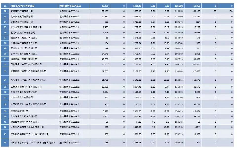 5.根據(jù)《關(guān)于2016年度、2017年度乘用車企業(yè)平均燃料消耗量管理有關(guān)工作的通知》要求,對部分特殊企業(yè)在計算平均燃料消耗量積分時達標(biāo)值乘以相應(yīng)數(shù)值。標(biāo)注“**”的表示達標(biāo)值乘以160%,標(biāo)注“*”的表示乘以130%。