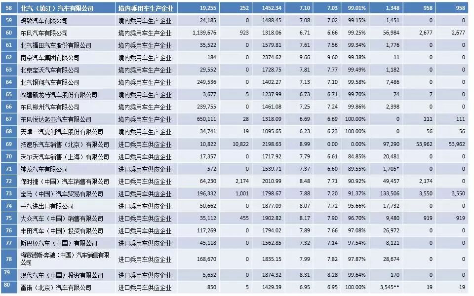 2016年度乘用車平均燃料消耗量達標(biāo)企業(yè)積分核算情況