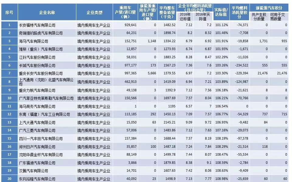 根據(jù)《關(guān)于2016年度、2017年度乘用車企業(yè)平均燃料消耗量管理有關(guān)工作的通知》(工信部聯(lián)裝﹝2017﹞266號)要求,現(xiàn)將2016年度中國乘用車企業(yè)平均燃料消耗量與新能源汽車積分情況予以公告。