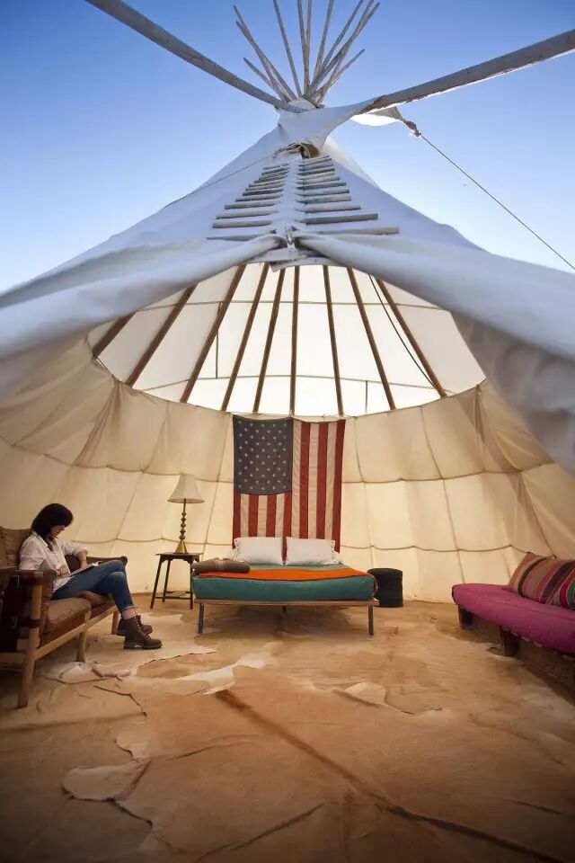 在美國德州Marfa地區(qū)的一個(gè)沙漠里,有一間名叫El Cosmico的酒店,雖然說是酒店但El Cosmico的構(gòu)成其實(shí)是一輛一輛重新整修過后的老式拖車和游牧民族式帳篷,還有一些公共空間:能夠讓人舒服的享受一整個(gè)午后的林蔭吊床區(qū)、戶外廚房用餐區(qū)、戶外舞臺(tái)甚至是閱讀區(qū);也可以租借自行車來探訪周邊的藝術(shù)家部落及藝術(shù)品!里面設(shè)施齊全,就像住進(jìn)酒店一樣。