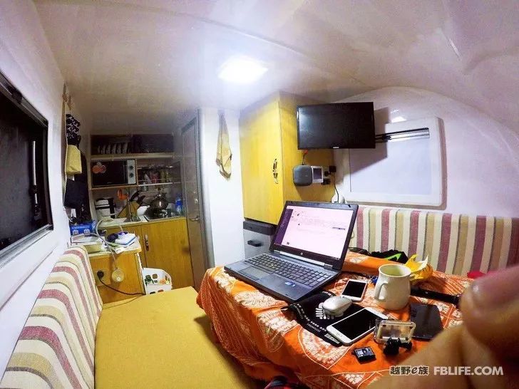 當(dāng)然為了這三個數(shù)字也犧牲了很多,例如內(nèi)高只省下172厘米,在車內(nèi)我這個192身高的大體格只能低著頭或者彎著腰。房車箱體長度只剩下了3.6米,所以只能采用升降桌+卡座變換成床鋪的方式,而且只有一個大床。