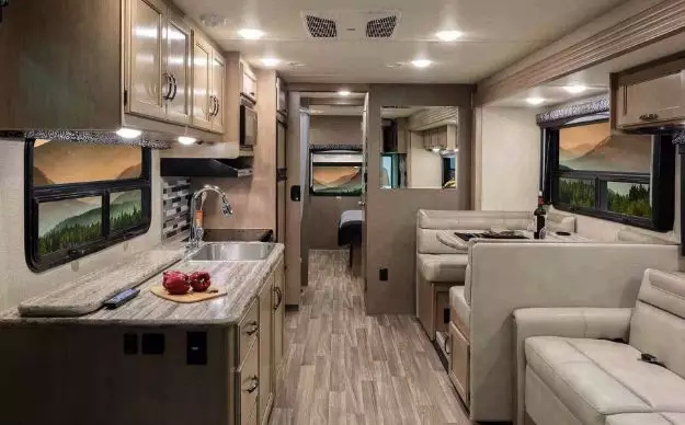 自駕式旅游房車是指整車體是一個(gè)車架,一般由大巴車、卡車或面包車改裝,叫Motorhome。Motorhome又分為三個(gè)檔次 - Class A, B, C。Class A是由大巴車改裝,是旅游房車中最豪華的車型,當(dāng)然價(jià)格也是不菲的。Class B通常是面包車改裝,由于車內(nèi)空間有限,車內(nèi)的設(shè)施也就比較小巧精簡。Class C是由卡車改裝,尺寸一般在25~30英尺,大小介于Class A和Class B之間,是最常見的房車。
